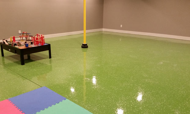 For this interior residential project, we applied colored epoxy to the basement floor creating a smooth, durable surface for the play area.