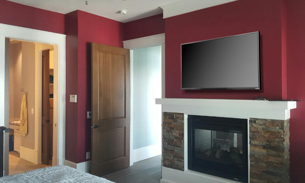 For this residential interior painting project, we we painted all the trim, including the mantel. We also painted the walls and stained and varnised the door.